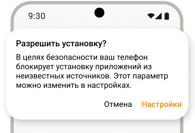 Если смартфон запросит разрешение, дайте его в настройках: Разрешить из этого источника → Установить